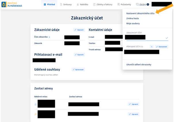 Číslo zákazníka/obchodního partnera a smluvního účtu najdete na faktuře nebo předpisu zálohových plateb.